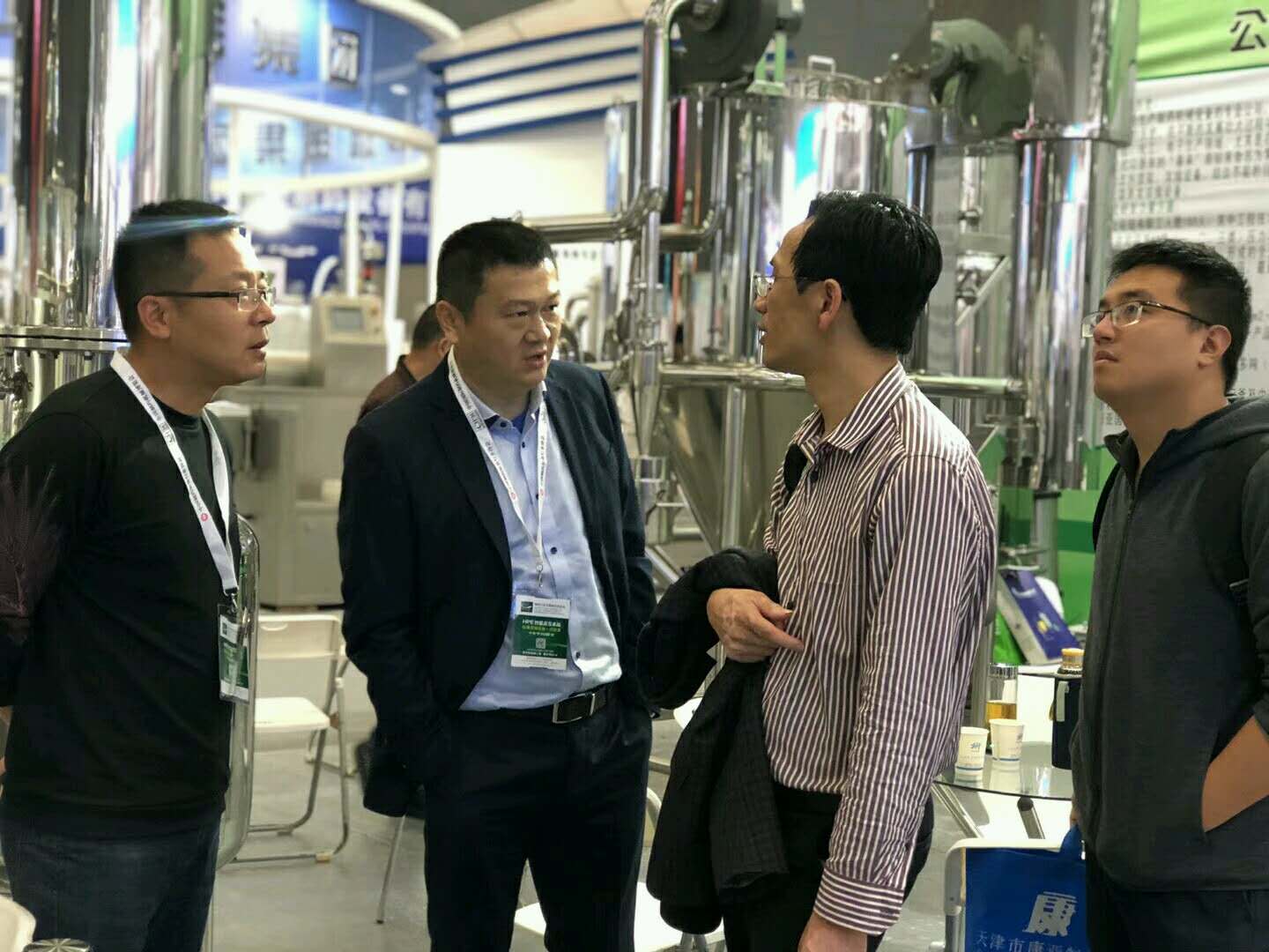 展会首日,春来低温浓缩生产线设备一经亮相,便凭借出众的产品性能成为展馆中的一大亮点,不时就有意向客户进行咨询。FHTY.COM负责人蔡总就低温浓缩生产线设备的技术原理对客户进行了详细解答,还对生产线中所采用的技术特点结合实际案例进行了详细的分析,解答中既有详细的数据,也有切实的案例。在场客户听完之后热情高涨,对于产品赞叹不已。有一位客户听完蔡总对设备的介绍后当即敲定合作,低温浓缩生产线设备再次远“嫁”他国!