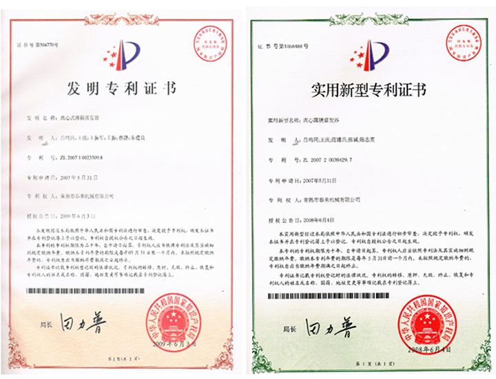 2.蒸发浓缩能力大:物料在加热面上产生几百倍或几千倍的离心力,蒸发速率快,效果好。