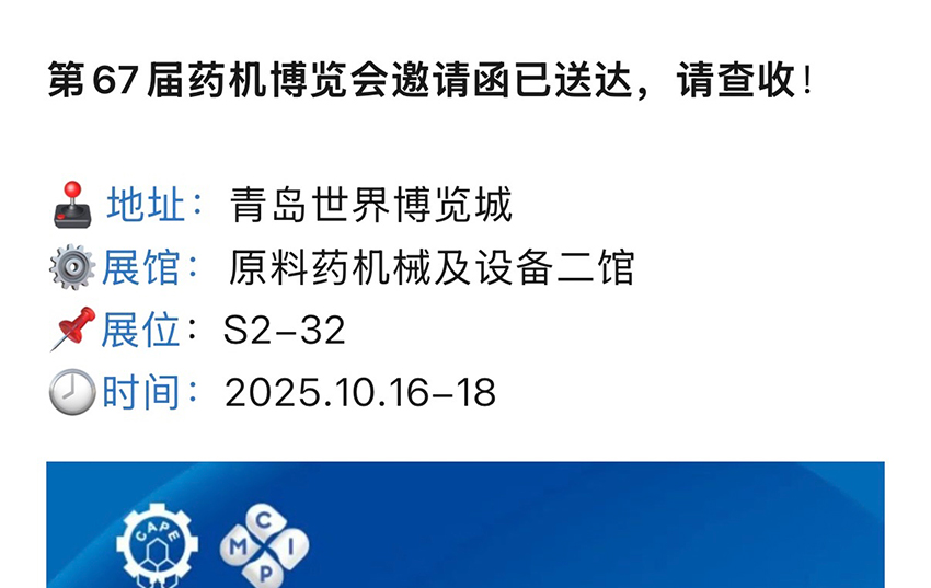 春来邀您共鉴药机盛会|第67届(2025年秋季)全国制药机械博览会