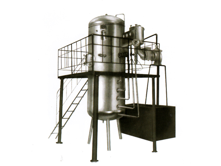 本设备是一种带有保温层夹套而呈圆柱型 的立体密封设备,采用简单高效水力喷射器抽真空。本设备共分三部分,蒸发室、回热盘及分离器。料液由蒸发室上部被吸入室内。加热盘管由三到五排的扁圆形不锈钢管组成。蒸汽在盘管的空间内加热,现新型的浓缩器下封头内增加一组小盘管。 料液低于30公斤也可以蒸发。本设备不易跑料,清洗方便,外形美观,保温层外用不绣钢薄板板磨上花纹,符合医药食品 卫生法要求,达到GMP标准。